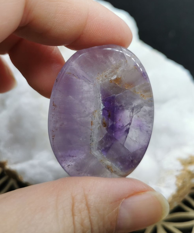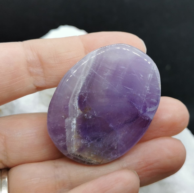 Tenez la pierre du souci entre l'index et le pouce, en déplaçant doucement le pouce d'avant en arrière sur la pierre. Cette action de déplacer son pouce d'avant en arrière sur la pierre stimule les nerfs de la main qui réduisent le stress. C'est une aide naturelle à l'auto-apaisement, la forme la plus simple de médecine naturelle.
