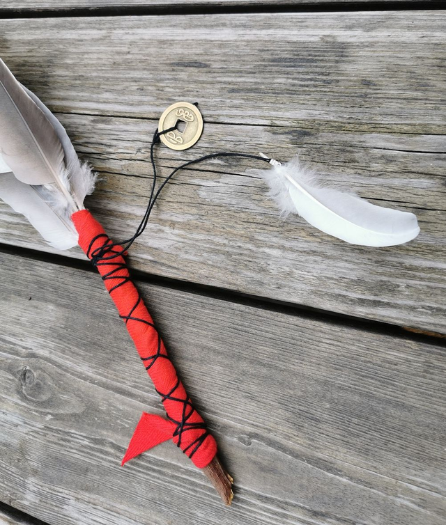 Plume de fumigation 30cm environ, création unique. Couleur rouge pour l'énergie du chakra racine et l'ancrage.